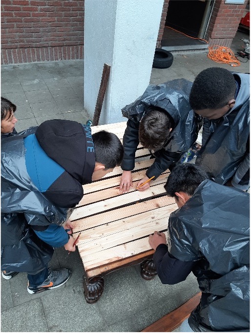 - We willen meer zitplekken. Zodat onze ouders kunnen zitten als ze aan de schoolpoort wachten. Daarom hebben we zelf al banken gemaakt.
